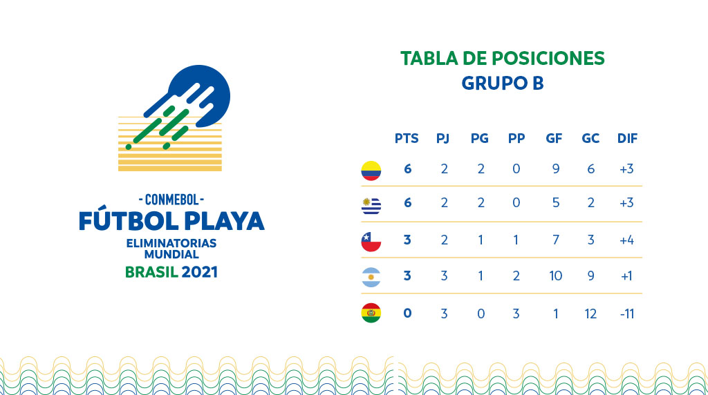 Tabla De Posiciones Clasificatorias, Conmebol Com Auf Twitter Tabla De Posiciones De Las Eliminatoriasfutbolplaya 2021 Grupo Dia 3